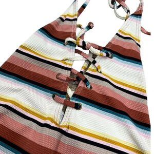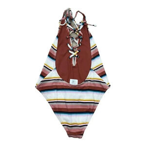 Billabong Striped Easy Daze Lace Up One Piece Swimsuit S