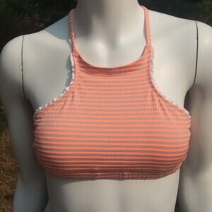 Billabong Striped Halter Swim Bikini Top Orange Gray Strappy Girl's Size 10