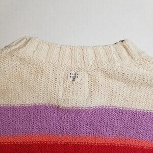 Billabong Striped Knit Sweater Cropped Lavender Orange Crew Neck Top Medium