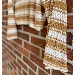 ☀️ Cozy + coastal vibes! This Billabong striped knit sweater features golden mustard and cream stripes, a relaxed slouchy fit, and lightweight breathable knit — perfect for layering over swimsuits, pairing with high-rise denim, or throwing on for cool beach nights.
