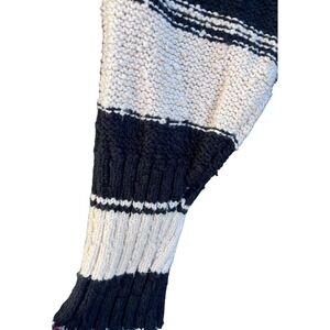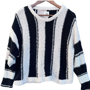 Billabong Sweater Women's LG Cream Black Crew Neck Chunky Pullover Striped Top
