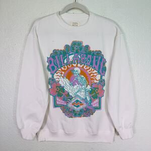 Billabong Sweatshirt Womens XS Skeleton Surfer Wave Floral Surf Retro Sweater