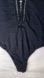 Chic black swimsuit with unique crochet front. Ideal for beach days.
