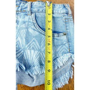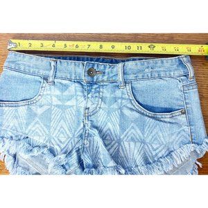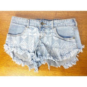 Billabong Sz 27 Denim Jean Cutoff Shorts Laneway Aztec Tribal Distressed Fringe. Condition is "Pre-owned".