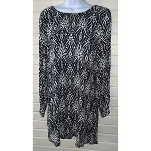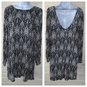 Billabong Sz MEDIUM Black White Scoop Back Flowy Blouse Tunic Top *VGUC