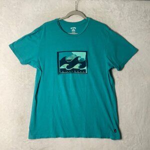 Billabong Team Wave Tee T-Shirt Men Large Aqua Blue 100% Cotton Surfer Beach