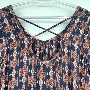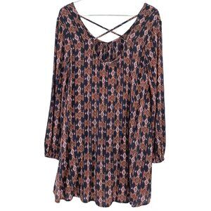 Billabong Tribal Print Shift Dress Multicolor Mini Strappy Back V-Neck Long Sleeve Lightweight Breathable Women's