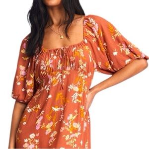 Embrace elegance with this stunning Billabong floral orange midi dress. Shirred keyhole neckline with tie in front. Low-Cut back with Signature BILLABONG Metal Tag. Size medium PTP 16 Length 36” Perfect for any occasion, this dress combines style and comfort effortlessly. Excellent pre-owned condition