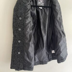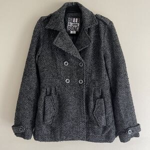 Billabong Tweed Pea Coat Jacket Womens Size XL Wool Blend Collared Black Pocket