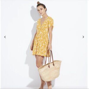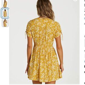 Billabong Twirl Twist Mini Dress Yellow Women's Teen Small Summer Button Front