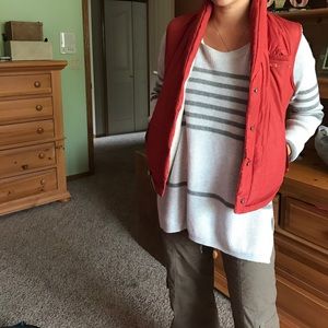 Burnt orange billabong vest, warm inside and optional hood with hood pocket