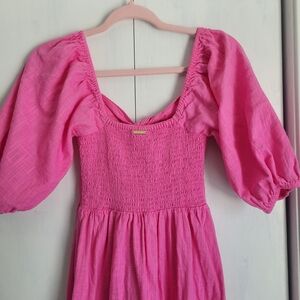 Chic long sleeve dress in vibrant pink. Perfect for casual outings.