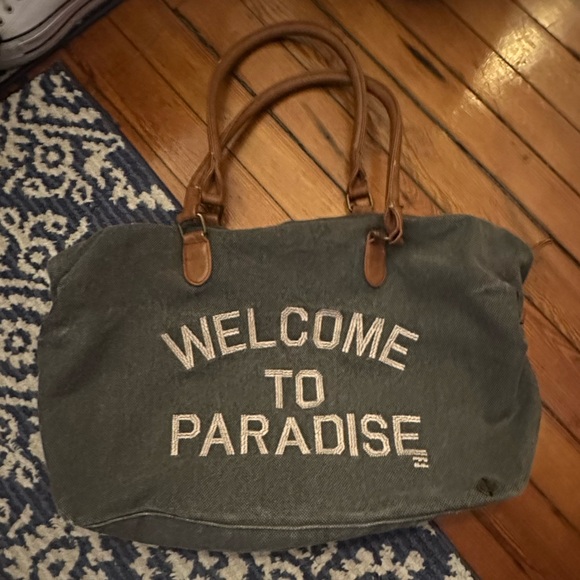 Getaway vibes! This Billabong “Welcome to Paradise” weekender/overnight bag is the perfect size for road trips, gym gear, or beach days.