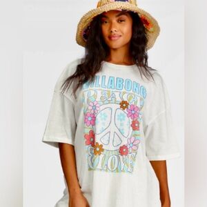 White short sleeve tee with colorful peace and love graphic by Billabong