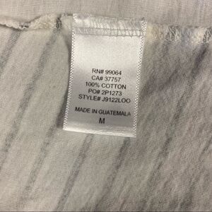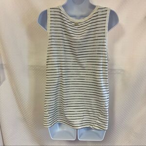 Strappy white tank top from Billabong. There’s a textured layer on top that is cute. The colour of the shirt is white with navy stripes on back. The straps are wide and comfy.