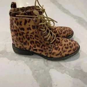 Billabong Willow Way Leopard Ankle Combat Boots Zipper Laces Women’s Size 7