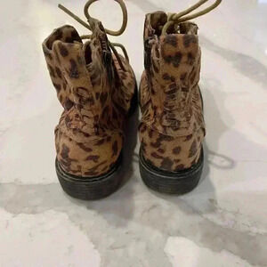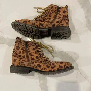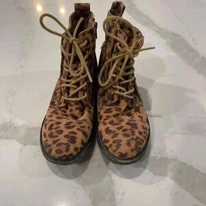 Billabong Willow Way Leopard Ankle Combat Boots Zipper Laces