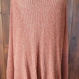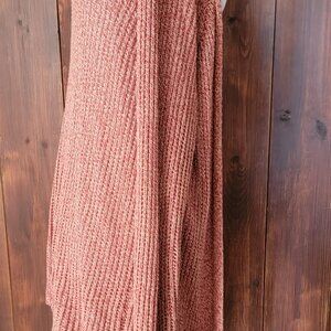 Billabong Women L Russet Open Knit Cardigan 100% Cotton Long Duster Pockets Cozy