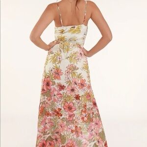 Billabong Cream & Pink Floral Cotton Blend Ruffle Side Slit Maxi Dress