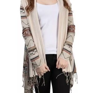 Billabong Women's Aztec Fringe Open Front Waterfall Cotton Sweater Size Large