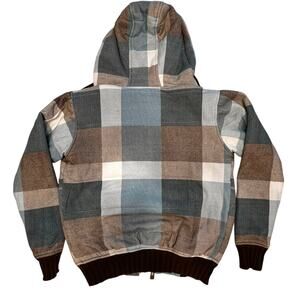 Billabong Women's Blue White Brown Plaid Zip Up Jacket Size Small