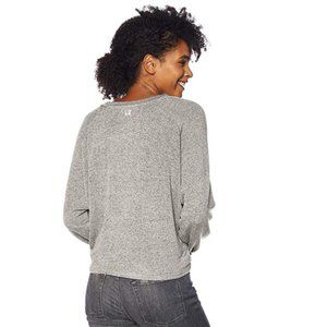 Billabong Women's Breaking Ties Shirt. 80% Rayon, 20% Polyester. Size Large Color Ash Heather. Pull On closure. Billabong premium fleece. Lightweight terry knit top with front tie knot detail.