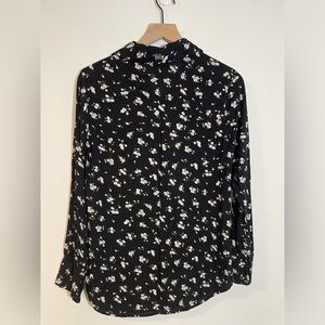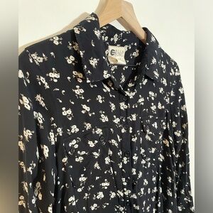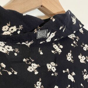 Billabong Women’s Button Down Long Sleeve Black Floral Shirt lightweight