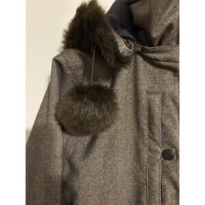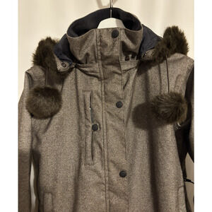 Billabong Womens Coat Jacket Large Brown Fur Hood Zip Snaps Pockets