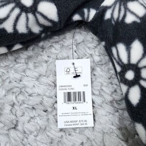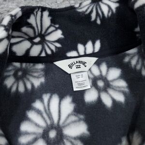 Women's Billabong Casual Fling cropped fleece half zip jacket in gray and white floral print. New with tags. Women's size XL, real measurements shown in photos with jacket laid flat: