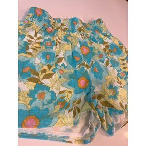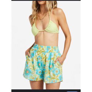 Billabong Womens Floral Cotton Shorts M Elastic Waist Lightweight Lined Summer N