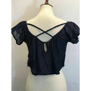 Billabong Womens Navy Blue Cotton Gauze Summer Festival Sol Scoop Crop Top Sz S