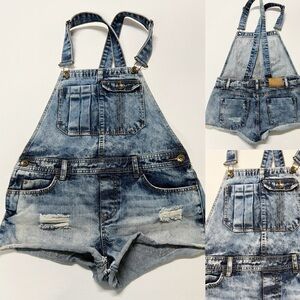 Billabong Womens Ovah n Ovah Acid Wash Distressed Cut Off Denim Overalls Size M