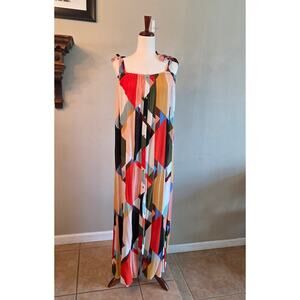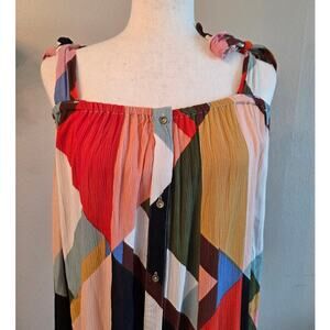 Billabong Women's Rainbow Gate Maxi Dress. Colorful Print on Rayon. Tie Straps. Button Closure. Perfect for Summer Vacation or Swimsuit Coverup. Excellent Condition. Smoke Free Home.