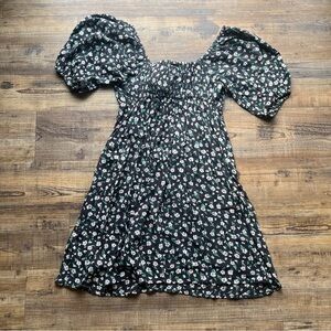 Chic mini dress with floral pattern. Features puff sleeves. Perfect for casual wear.