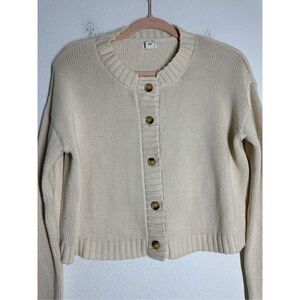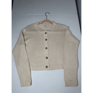 Billabong Women’s Cotton Blend Knit Crop Cardigan Buttoned Sz S Oversized