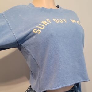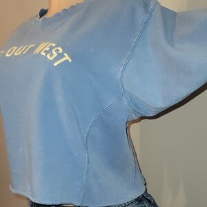 Billabong X Wrangler Blue "Surf Out West" Cropped Sweatshirt