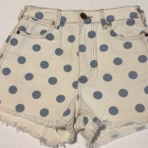Billabong X Wrangler Showdown Blue Polka Dot White Frayed Hem Jean Shorts 24