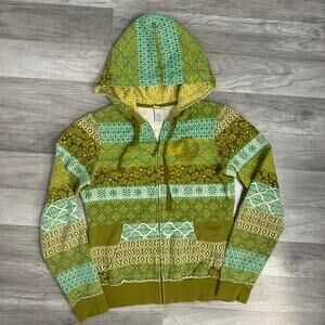 Billabong Y2k 00s Stripped Patchwork Style Zip Jacket Hoodie Medium Hippie Boho