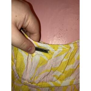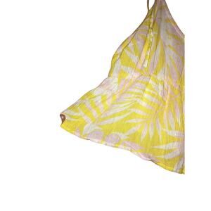 Billabong Yellow White Pink Tropical Leaf Tie Strap Cami Top Size Medium