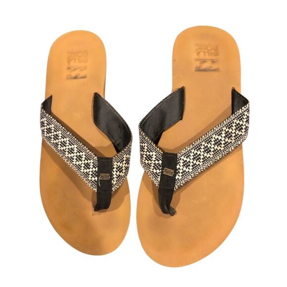 Billabong black and white woven thong sandal Size 8 Woven Strap Sandals