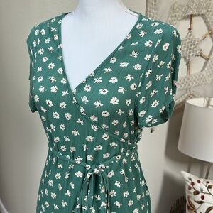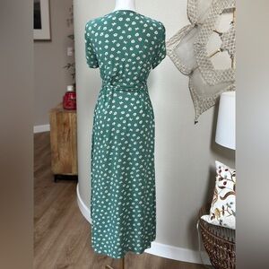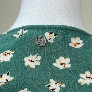 Great Preowned condition. Tag says XL although measurements look more like a medium. Please confirm measurements approximate laying flat in pictures as Poshmark does not accept returns for fit issues. Please scroll to see all nine photos and one video provided. Tiny white floral print on green background. 100% rayon. Great for any warm weather event.