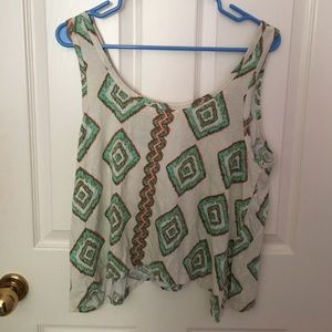 Tank top/crop top with teal and orange tribal pattern. Barely worn. No damage. Pocket on left breast. Soft material.