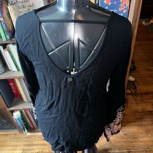 Billabong floral bell sleeve boho flowy scoop neck S blouse