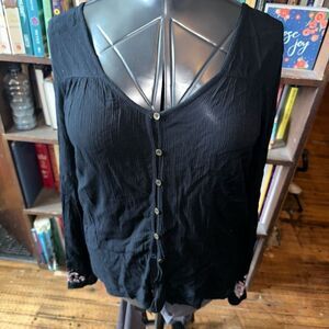 Billabong beachy, scoop neck, button up, bell sleeve, boho, flowy blouse. Approximately 20 inches from armpit to armpit, 23 inches long. Pairs well with jeans or shorts. From a pet and smoke free house. Happy to bundle!