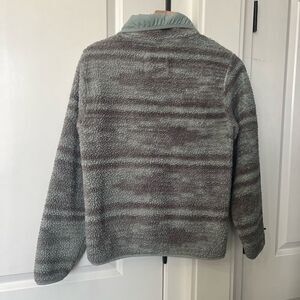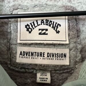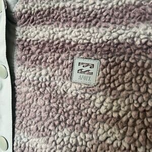 Billabong fuzzy womens button up sweater jacket size small grey and blue