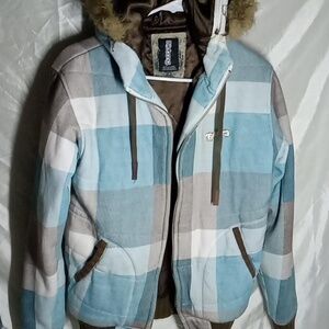 Billabong hooded with fur trim jacket. It is in great condition size small. man or woman.