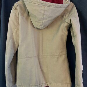 Billabong cream hooded jacket. Red quilted interior. Size medium. Gently used.