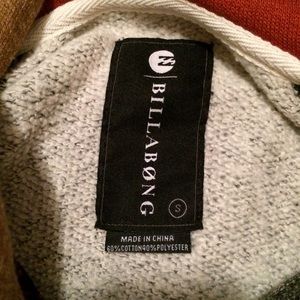 Dark grey middle, black sleeves, tan hood and burnt red/orange front pocket and inside hood. Very comfortable! Size small, excellent condition.