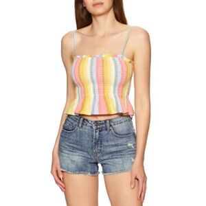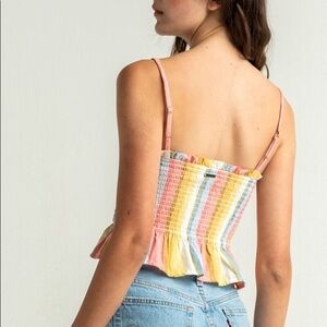 Billabong keep your cool rainbow smocked shirred peplum crop cami. Size S
