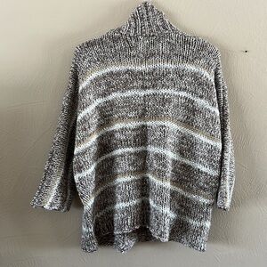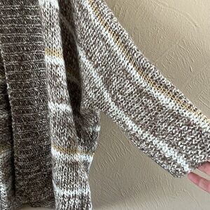 Billabong striped open sweater 3/4 sleeves gray with tan and gold stripes size M